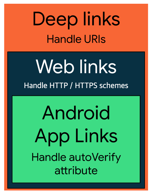 Android App Links are web links that use the HTTP and HTTPS schemes and contain the autoVerify attribute.