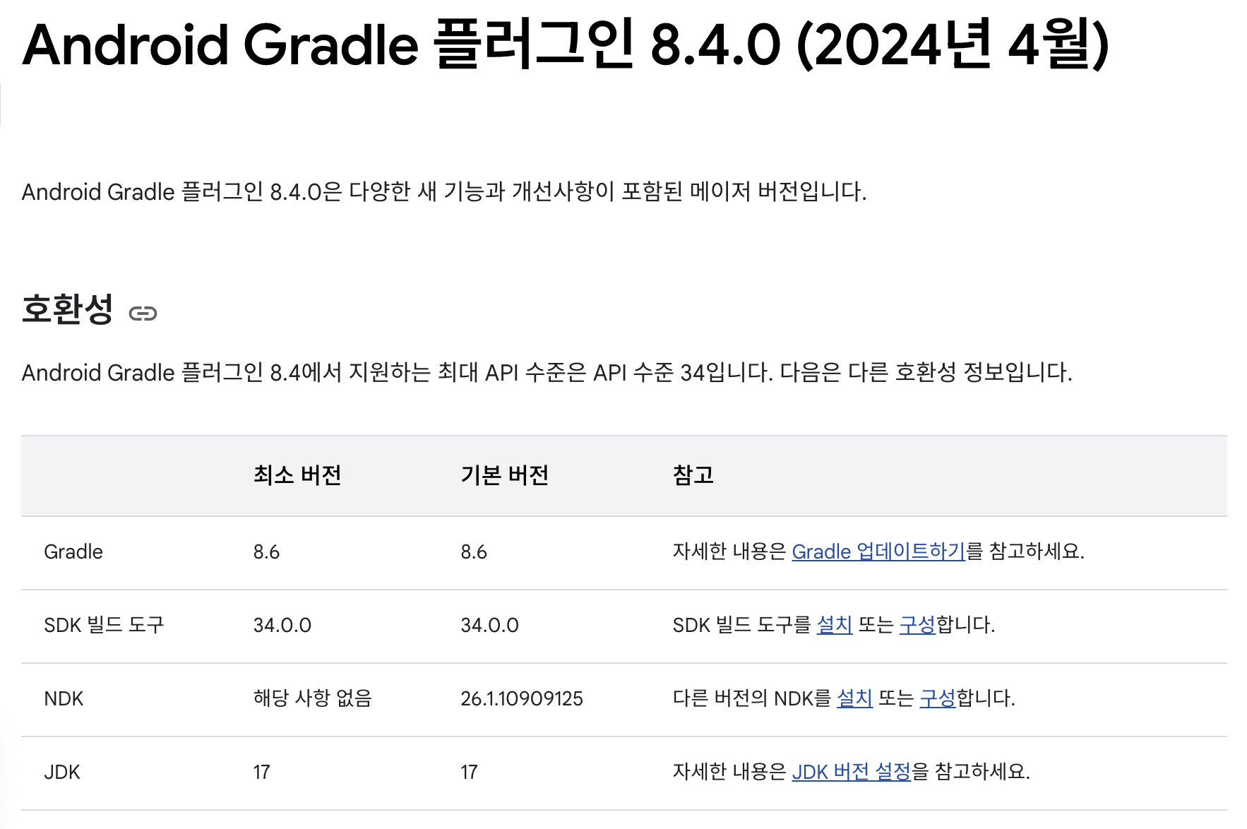 - `AGP`, `Gradle`, `JDK` 는 서로 버전 호환성을 신경써야한다. 현재 나는 AGP 를 8.4 를 사용하고 있는데 Gradle Version은 8.6, JDK Version은 17 (JBR) 로 기본적으로 셋팅되어있다.