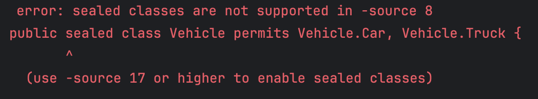 실제 sourceCompatibility 를 17로, targetCompatibility을 16로 지정했을 시 아래와 같은 컴파일 에러가 뜬다.